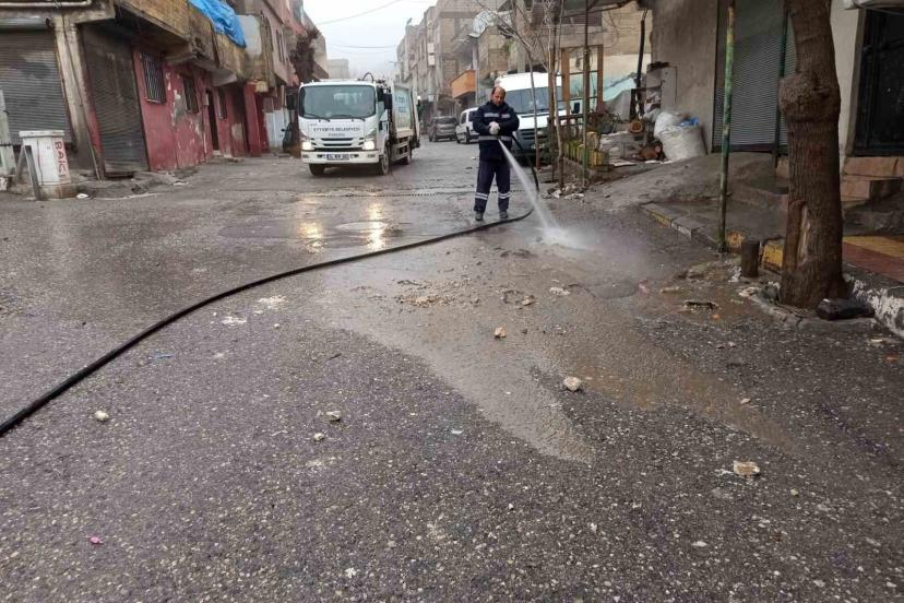 Şanlıurfa’nın Eyyübiye ilçesinde harekete geçen belediye ekipler, kısmi sel baskınlarının yaşadığı mahallelerde temizlik çalışmalarını sürdürüyor.