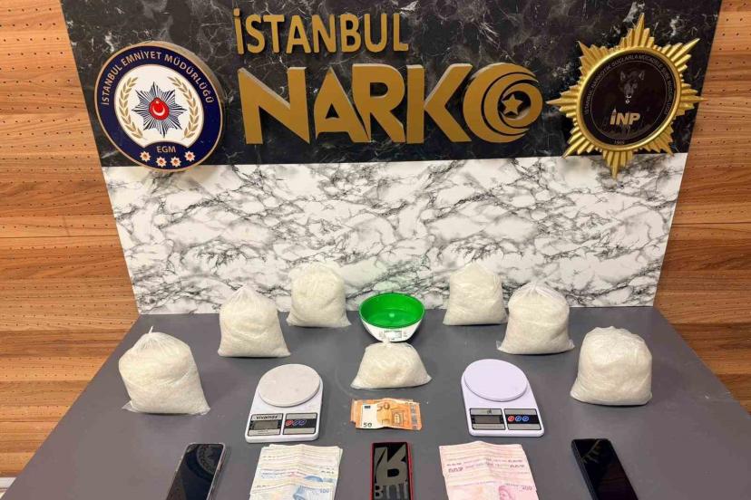 İstanbul Cumhuriyet Başsavcılığı tarafından yürütülen soruşturma kapsamında, Narkotik Suçlarla Mücadele Şube Müdürlüğü ekiplerince Fatih’de bir ikamete operasyon düzenlendi. Düzenlenen operasyon sonucu haklarında çok sayıda suç kaydı bulunduğu belirlenen şüpheliler Ü.Ç. ve Z.R. ’uyuşturucu veya uyarıcı madde imal ve ticareti’ suçundan gözaltına alındı. Operasyonda ayrıca, 7 parça halinde toplamda 6 kilo 550 gram gelen uyuşturucu madde, 3 adet çalışır vaziyette hassas terazi ve 19 bin lira ile 150 euro ele geçirildi.