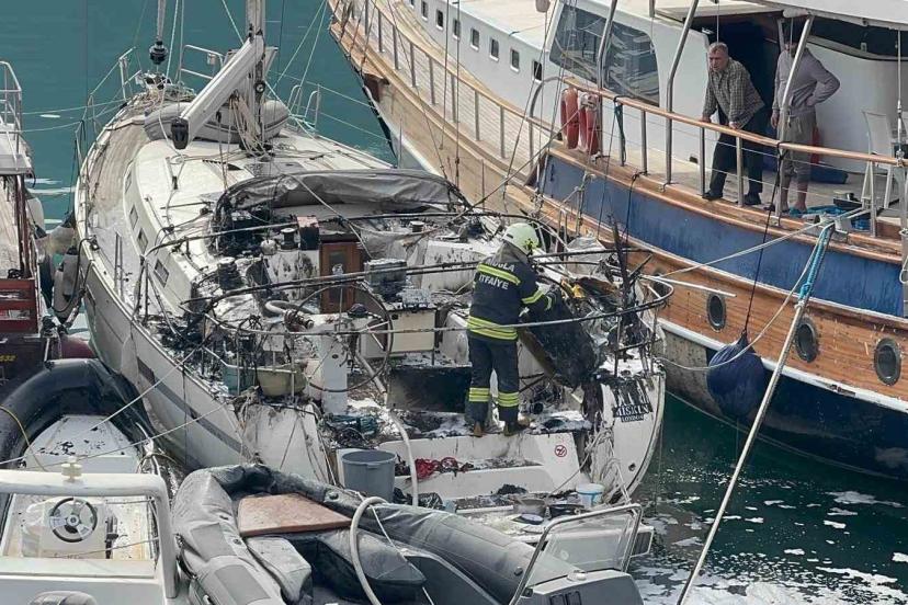 Muğla’nın Fethiye ilçesinde düzensiz göçmen kaçakçılığı yapılması nedeniyle el konulan yelkenli teknede çıkan yangın, itfaiye ekiplerince söndürüldü.