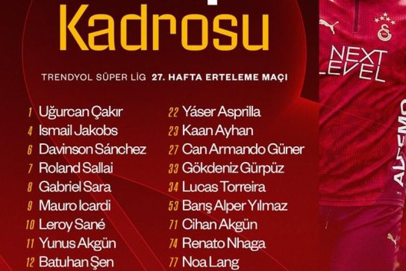 Galatasaray’ın, Trendyol Süper Lig’in 27. hafta erteleme maçında yarın deplasmanda oynayacağı Göztepe müsabakasının kamp kadrosu belli oldu.