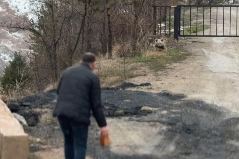 Gümüşhane’de aç kalan yavru ayıyı elleriyle beslediler