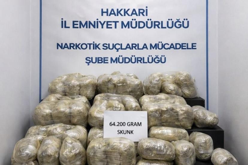 Hakkari’de emniyet ekipleri tarafından yapılan çalışmalar sonucu 64 kilogram skunk ele geçirilirken, 4 şüpheli yakalandı.