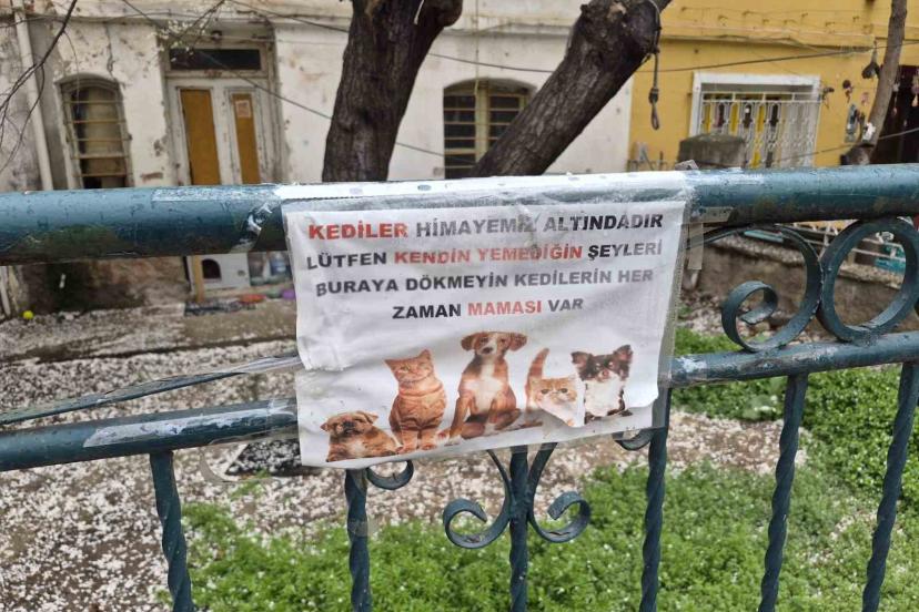 Eskişehir’de hayvanseverler tarafından sokak hayvanlarının beslendiği bir evin bahçe korkuluğuna asılan, "Kediler himayemiz altındadır. Lütfen kendi yemediğiniz şeyleri buraya dökmeyin" yazılı kağıt dikkat çekti.