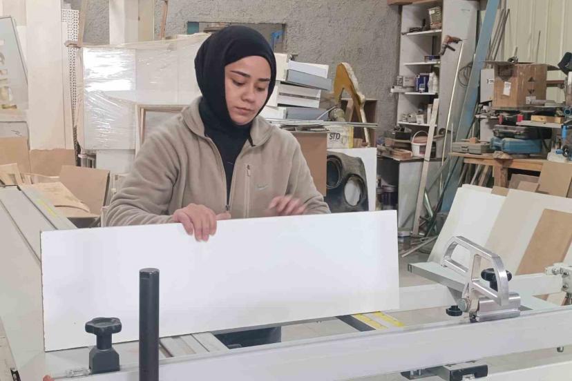 Yaklaşık 5 yıl önce çırak olarak başladığı mobilya sektöründe kendini geliştiren genç kadın, bugün ustalık yaparak hem ailesine katkı sağlıyor hem de kadınların her alanda başarılı olabileceğini gösteriyor.