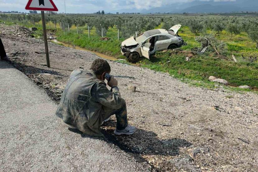 Hatay’da şarampole devrilerek hurdaya dönen otomobilin sürücüsü kazayı yara almadan atlattı.