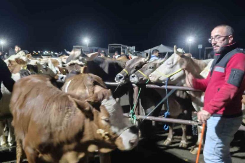 İç Anadolu Bölgesi’nin en büyüğü olan Şarkışla Hayvan Pazarı’nda Kurban Bayramı’nın yaklaşmasıyla yoğunluk arttı, alım satımlar gece de devam ediyor.