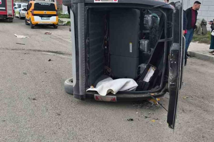 Iğdır’da meydana gelen kazada ticari araç, sürücüsünün kontrolü kaybetmesi sonucu refüje çarparak takla attı.