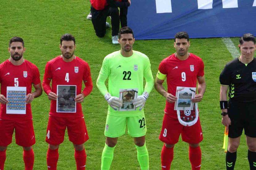 İran A Milli Takımı oyuncuları, bir otelin sahasında oynanan hazırlık maçında Kosta Rika ile karşılaştı. İranlı futbolcular, seremoniye savaşta öldürülen çocukların yanı sıra zarar gören tarihi yapıların fotoğraflarıyla çıktı. Seremoni sonrası ülkelerinin milli marşı okunurken, müsabakayı FIFA Başkanı Gianni Infantino da izledi.