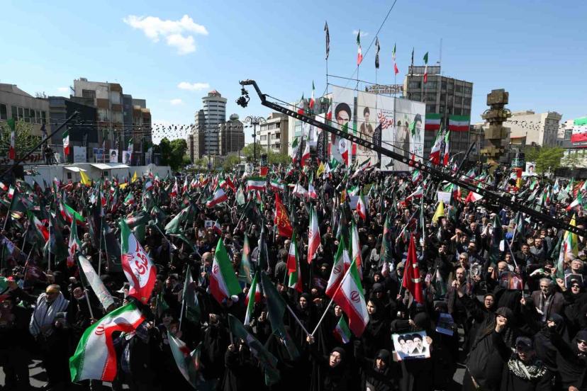 ABD ve İsrail karşıtı sloganların atıldığı törende katılımcılar, İran ve Hizbullah bayrakları ile Hamaney’in fotoğraflarını taşıdı. Ayrıca, ABD ile sağlanan ateşkese tepki gösteren kalabalık, "Bu son mesajdır, müzakere haramdır", "Kahrolsun ABD", "Kahrolsun İsrail", "ABD ile müzakereye hayır, teslimiyete hayır", "Savaşa devam", "ABD üsleri ya vurulacak ya boşaltılacak" ve "Lübnan’sız ateşkes İslam’a ihanettir" sloganları attı.