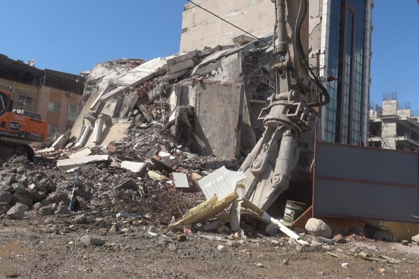 Asrın felaketinde hasar alan ve mahkeme süreci devam eden binaların il genelinde yıkımları sürüyor. İskenderun ilçesi İbrahim Karaoğlan Caddesi üzerinde yer alan 7 katlı binada depremde hasar görmüştü. Mahkeme süreci sona eren 7 katlı binanın iş makinasıyla kontrollü yıkımına başlanmıştı. Binanın iş makinasının son darbesiyle yerle bir olduğu kareler an be an kaydedildi. Görüntülerde; iş makinasının kolona dokunmasıyla 7 katlı binanın yerle bir olduğu görüldü. Yıkım herhangi bir sorun yaşanmadan son bulurken moloz kaldırma çalışmaları devam ediyor.