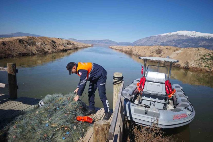 Işıklı Barajında kaçak avcılığa geçit yok 5 bin metre ağ ele geçirildi