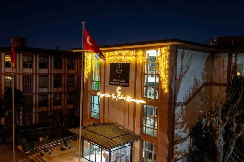 İstanbul’da Ramazan ayının manevi atmosferi bu yıl camilerin, meydanların ve sokakların yanı sıra eğitim kurumlarının iç ve dış cephelerinde de hissediliyor. İl Milli Eğitim Müdürlüğü binası ile bazı okulların dış cephelerinde gerçekleştirilen özel ışıklandırma ve süslemeler, şehrin eğitim yapılarında Ramazan’a özgü estetik ve anlamlı bir görünüm oluşturdu. Sultanahmet’e bakan cephede turistlere İngilizce mesaj verilen İstanbul İl Milli Eğitim Müdürlüğü binası ise bu dikkat çekici uygulamanın sembol noktalarından biri oldu.