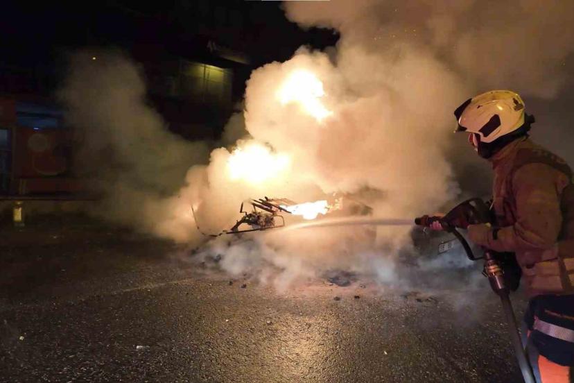 Kadıköy Fikirtepe’de park halindeki bir motosiklette çıkan yangın kısa sürede büyüyerek yanında bulunan otomobile sıçradı. İtfaiye ekiplerinin müdahalesiyle söndürülen yangında iki araç da tamamen yanarak kullanılamaz hale geldi.