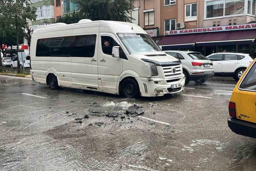 Kanalizasyon borusu patladı, sürücüler zor anlar yaşadı
