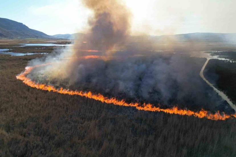 Karamık Gölü’ndeki sazlık alanlarda yangın