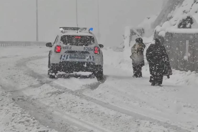 Minibüste bulunan iki kadın ve 1,5 yaşındaki çocukları mahsur kaldı. Hakkari İl Emniyet Müdürlüğü trafik ekipleri, vatandaşları ekip aracına alarak güvenli bir şekilde gitmek istedikleri yere ulaştırdı.