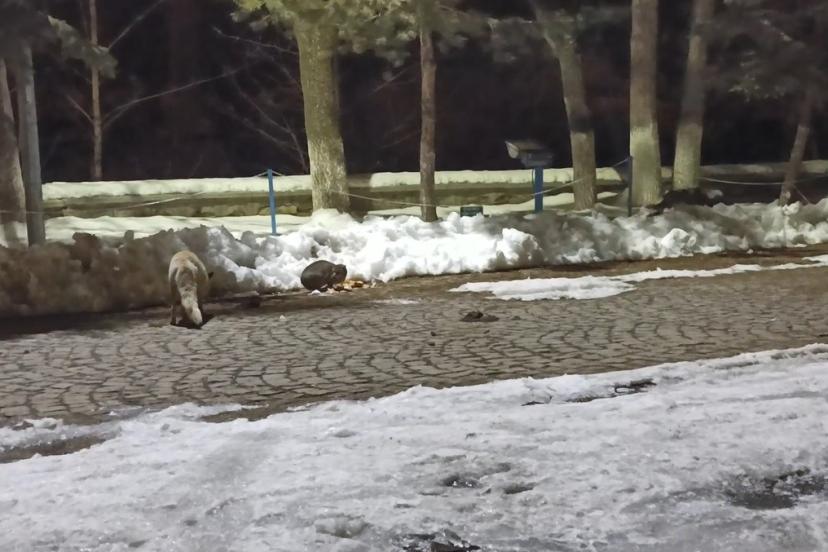 Bir süre sonra yeniden bölgeye gelen kızıl tilki, bu kez vatandaşın attığı yiyeceklerle karnını doyurdu. Tilkinin bazı yiyecekleri ise daha sonra yemek üzere kara gömdüğü görüldü. Tilkinin yiyecekleri ağzıyla taşıyarak karı eşeleyip gömmesi ve ardından üzerini kapatması kameraya yansıdı.