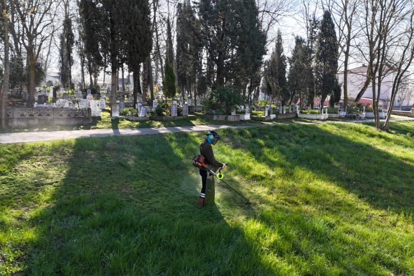 Kartepe Belediyesi Park ve Bahçeler Müdürlüğü ekipleri, vatandaşların bayramda kabir ziyaretlerini rahatça yapabilmesi amacıyla ilçe genelindeki mezarlıklarda çevre düzenlemesi yürütüyor.