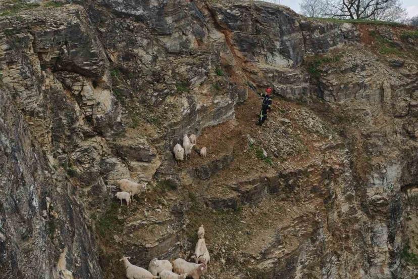 Kocaeli’nin İzmit ilçesinde yabani hayvandan ürkerek sarp kayalıklara tırmanan ve mahsur kalan 16 keçi ile oğlak, itfaiye ekiplerinin zorlu arazi şartlarına rağmen yaklaşık 3 saatlik nefes kesen operasyonuyla kurtarıldı.