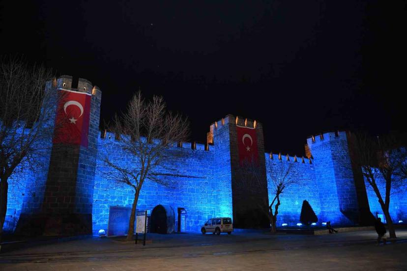 Kayseri Büyükşehir, tarihi surları mavi ışıkla aydınlatarak otizm farkındalığına dikkat çekti