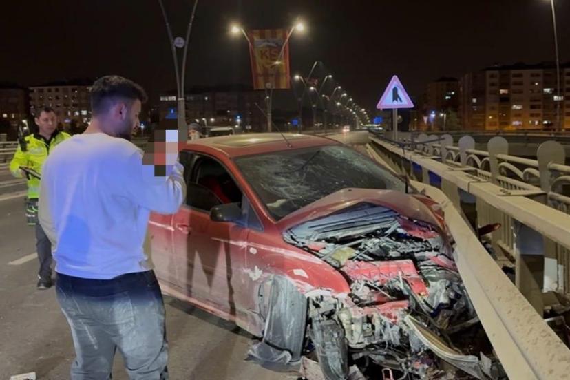Kayseri’nin Kocasinan ilçesinde kontrolden çıkan otomobil, karşı yola geçerek bariyerlere çarptı. Kazada yaralanan olmazken, tedaviyi reddeden sürücü kaza haberini ailesine görüntülü arayarak verdi.