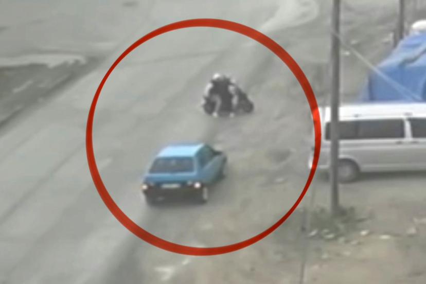 Kaza atlatan otomobil geri dönüp motosiklete çarptı: O anlar kamerada