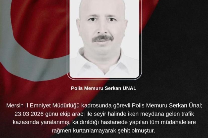 Mersin’de 4 gün önce ekip aracıyla kaza geçiren polis memuru Serkan Ünal hastanede yapılan tüm müdahalelere rağmen kurtarılamayarak şehit oldu.