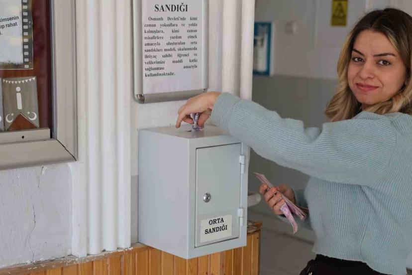 Okulda yürütülen çalışma kapsamında öğrenciler küçük katkılarla bir araya gelerek ihtiyaç sahibi arkadaşlarına destek oluyor. Yardımlaşma ve dayanışma kültürünü yaşatmayı amaçlayan uygulama, öğrencilerin de ilgisini çekiyor. Çalışma hakkında açıklamada bulunan Rehber Öğretmen Sibel Keskinkılıç, okulda uygulanan faaliyetle öğrencilerin yardımlaşma ve dayanışma duygusunu kazanmasını hedeflediklerini söyledi. Keskinkılıç, "Öğrenciler küçük katkılarla bir araya gelerek ihtiyaç sahibi arkadaşlarına destek olmayı öğreniyorlar" dedi. 9. sınıf öğrencisi Yasin Efe Karaaslan ise okula başladığında orta sandığı geleneğini öğrendiğini belirterek harçlıklarıyla ihtiyaç sahiplerine destek sunduklarını ifade etti.