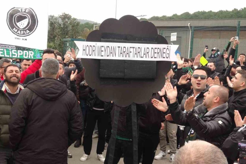 Kocaelispor taraftar grubu Hodri Meydan Taraftarlar Derneği üyeleri, son haftalarda yaşanan hakem kararlarına tepki göstermek amacıyla İstanbul Riva’da bulunan Türkiye Futbol Federasyonu (TFF) binası önüne siyah çelenk bıraktı.