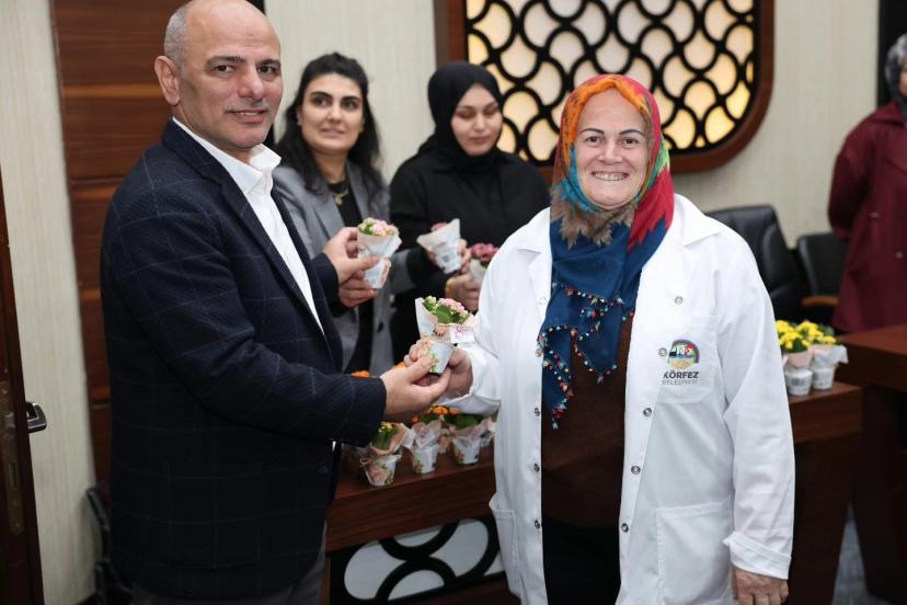 Körfez Belediye Başkanı Şener Söğüt, 8 Mart Dünya Kadınlar Günü dolayısıyla kadın personelle bir araya gelerek çiçek takdim etti.
