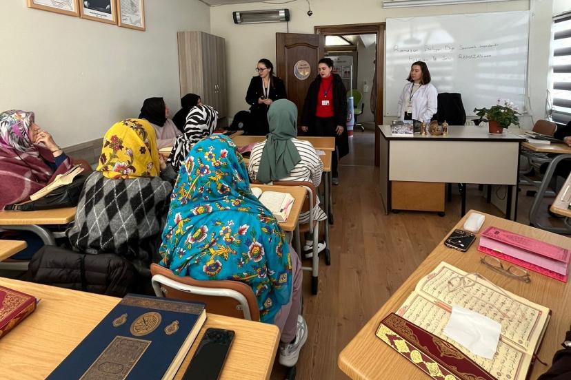 Akçakoca İlçe Sağlık Müdürlüğü ekipleri tarafından Ramazan kapsamında yürütülen sağlık programları çerçevesinde; Merkez Cami Kur’an kurslarında eğitim gören kursiyerlere yönelik kapsamlı bilgilendirme eğitimleri gerçekleştirildi. Eğitimde; kanser taramaları, üreme sağlığı, bebeklik ve çocukluk çağı taramaları, çocuk güvenliği, böbrek sağlığı, gebe ve menopoz okulları, obezite, işitme taramaları, pulmoner rehabilitasyon ve tüberküloz başta olmak üzere pek çok sağlık konusu ele alınırken kursiyerlerin soruları tek tek yanıtlandı.