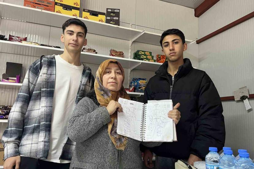 Hatay’da lise öğrencileri, 3 mahalle bakkalındaki 10 depremzede ailenin borcunu ödedi.