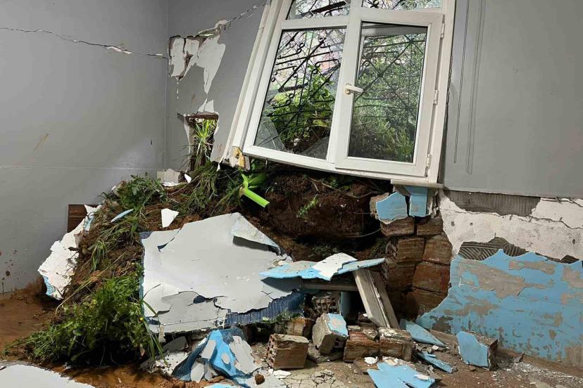 Maltepe’de aralıksız yağan yağışların zemini yumuşatması sonucu meydana gelen toprak kaymasında tek katlı bir ev duvarları yıkılarak kullanılamaz hale geldi.