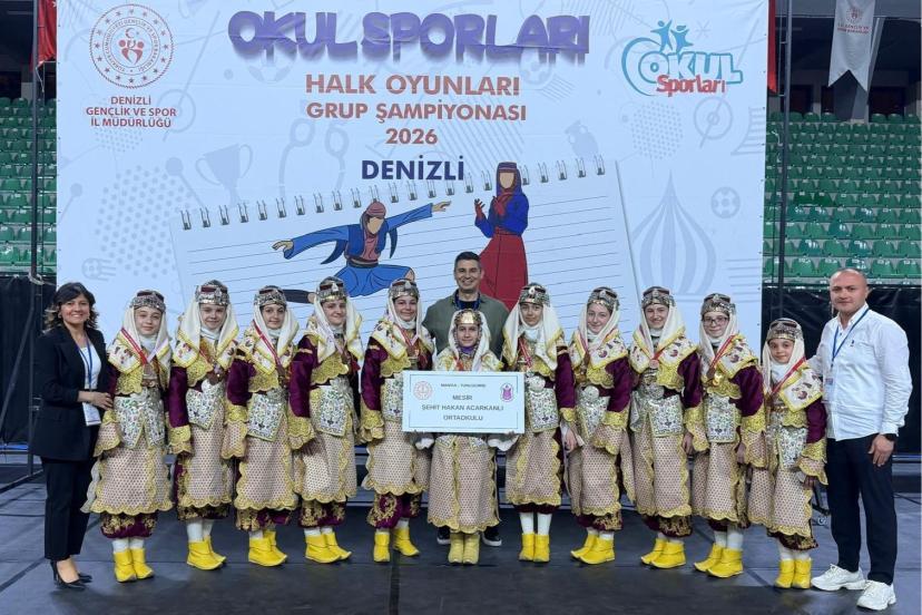 2025-2026 sezonu Okul Sporları Halk Oyunları Yıldızlar Düzenlemesiz Dal Grup Şampiyonası, Denizli’nin ev sahipliğinde gerçekleştirildi. İzmir, Aydın, Denizli, Antalya, Isparta, Burdur, Konya ve Manisa’dan toplam 10 ekibin mücadele ettiği organizasyonda Yunusemre Mesir Şehit Hakan Acarkanlı Ortaokulu öğrencileri sergiledikleri performansla jüri üyelerinden tam not aldı. Manisa temsilcisi ekip elde ettiği dereceyle Türkiye finallerine katılma hakkı kazandı.