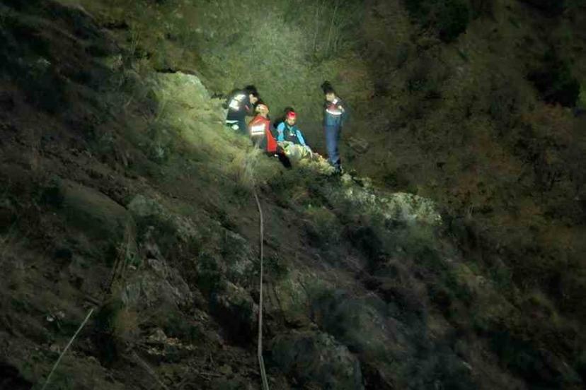 Mantar toplarken uçurumdan düştü, saatler süren çalışmayla kurtarıldı