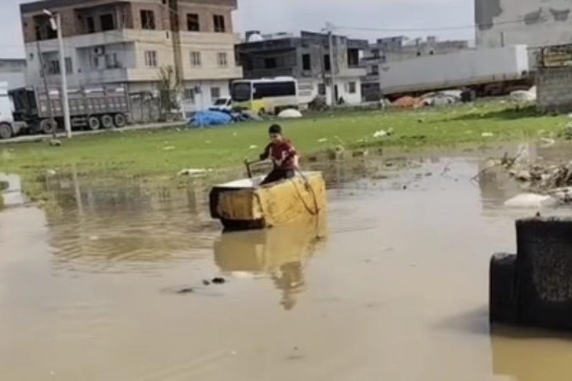 Mardin’in Kızıltepe ilçesinde etkili olan yağış sonrası oluşan su birikintisi, ilginç görüntülere sahne oldu. Buzdolabı kasasını kayık gibi kullanan çocuk, izleyenleri güldürdü.