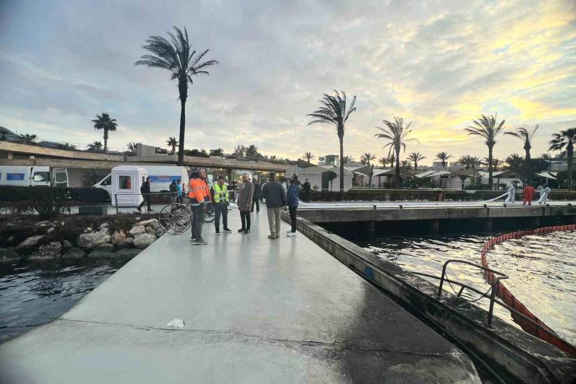 Dün gece geç saatlerde Yalıkavak Marina’da çıkan yangında boyları 20 ila 30 metre arasında değişen 7 motoryat yanarak batmış, bir motoryat da hafif hasar almıştı. Yangın esnasında denizde oluşan kirlilik için Bodrum Liman Başkanlığı koordinesinde temizlik çalışmaları başladı.Yalıkavak Marina tarafından görevlendirilen ve Çevre, Şehircilik ve İklim Değişikliği Bakanlığından lisanlı firma temizlik çalışmaları yürütüyor.