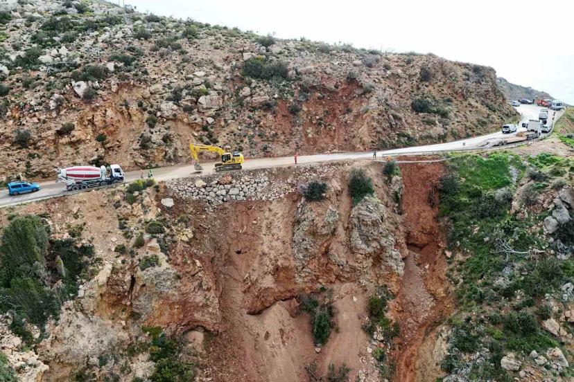 Mersin-Antalya D-400 Karayolunun Bozyazı-Aydıncık hattında meydana gelen yol çökmesinin ardından başlatılan onarım çalışmaları aralıksız devam ediyor.