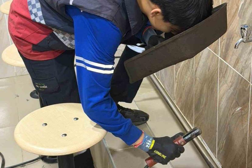 Ankara’da Fatih Mesleki ve Teknik Anadolu Lisesi Metal Teknolojisi Bölümü öğrencileri, bir okulun mescidinde bulunan kırık oturak ve ayak koyma yerlerini kaynak yaparak onardı.