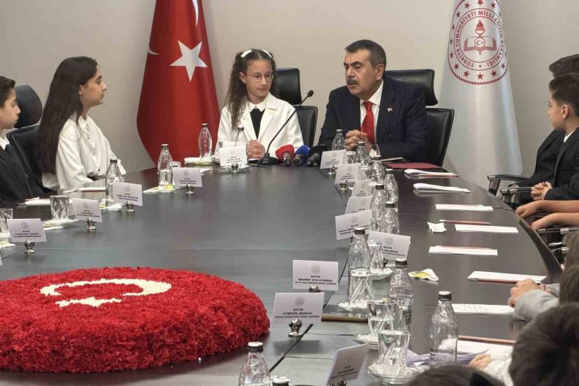 "İyi insanı, erdemli bir nesli hedefleyen Türkiye’ye Yüzyılı Maarif Modeli ile değerlerine bağlı kendini geliştiren dünyaya açık bireyler olarak geleceğe hazırlanıyoruz. ‘Maarifin Kalbinde Çocuk’ yaklaşımıyla şekillenen her düşüncede ve atılan her adımın öznesi olduğumuzun farkındayız. Sağlam bir geleceğin bilinçli tercihler, dijital esenlik ve güçlü bir iradeyle mümkün olduğuna inanıyoruz. Tabiata sahip çıkmak, israfı terk etmek ve dengeli bir yaşamı benimsemek bizim sorumluluğumuzdur. Daha temiz bir çevre, daha nitelikli bir hayat ve mutlulukla bakılan yarınlar için birlikte emek vereceğiz. 23 Nisan’ın bizlere hatırlattığı en kıymetli değer birlik, kardeşlik ve ortak geleceğimizdir. Bu bilinçle bizler barışı büyüten iyiliği çoğaltan ve insanlığa umut taşıyan bir nesil olarak ilerliyoruz. Türkiye Yüzyılı’nı ise bilimle, ahlakla, çalışkanlıkla ve millet sevgisiyle inşa edecek olan biz çocuklar bu sorumluluk kararlılıkla taşıyoruz. Gazi Meclisimizin açılışının 106. Yıl dönümünü kutladığımız bu özel günde Gazi Mustafa Kemal Atatürk olmak üzere bu güzel vatanı bizlere emanet eden tüm büyüklerimize en içten teşekkürlerimi sunuyorum. Geçtiğimiz hafta okullarımızda yaşanan acı olaylar hepimizi derinden üzmüş, birlik, dayanışma ve sorumluk bilincinin ne kadar önemli olduğunu bir kez daha göstermiştir. Hayatını kaybeden öğretmenimiz ve arkadaşlarımıza Allah’tan rahmet, yaralılara acil şifalar diliyoruz. Bu zor günler her çocuğun sevgi ve güven içinde yetiştiği bir eğitim ortamı oluşturmanın milletçe hepimizin ortak görevi olduğunu bir kez daha hatırlatmıştır. Sayın Bakanım bizlere bu eşsiz fırsatı sunduğunuz için sizlere gönülden teşekkür ediyorum. Bu ülkenin evlatları ve evlatları olarak 23 Nisan Ulusal Egemenlik ve Çocuk Bayramı’nı kutluyor, bayramımızın bizlere ve tüm dünya çocuklarına mutluluk ve barış getirmesini diliyorum."