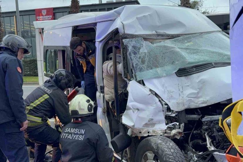 Samsun’da kontrolden çıkan minibüsün hafif ticari araca ve yolcu almak için duran belediye otobüsüne çarpması sonucu meydana ...
