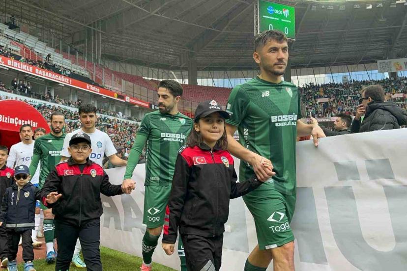 Eskişehir’de oynanan Ankara Demirspor-Bursaspor maçında Polis Haftası kapsamında üniforma ile sahaya çıkan minik taraftarlar ilgi odağı oldu.