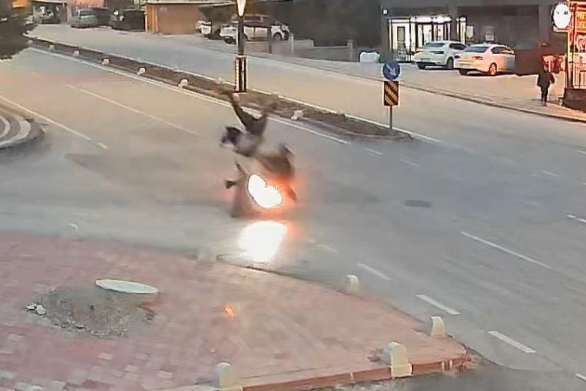 Kaza anı ise güvenlik kamerası tarafından anbean kaydedildi. Görüntülerde, yayanın koşarak yolun karşısına geçmeye çalıştığı esnada motosikletin çarptığı görülüyor.