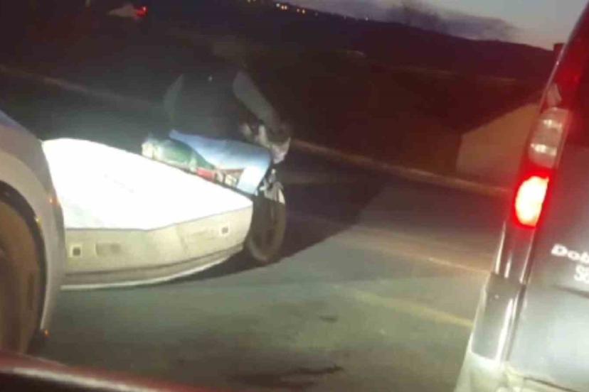 Olay, ilçe merkezinde akşam saatlerinde meydana geldi. Trafikte seyir halinde olan motosiklet sürücüsünün arkasına bağladığı yatağı yere temas edecek şekilde sürükleyerek taşıdığı görüldü. Yatağın yol boyunca sürtünmesi ve araçların arasında ilerlemesi dikkat çekerken, durum diğer sürücüler açısından risk oluşturdu. Görüntülerde, yatağın zaman zaman savrulduğu ve motosikletlinin dengesini korumakta zorlandığı anlar yer aldı. Trafikteki diğer sürücüler ise yaşanan duruma tepki gösterdi. Bir süre daha bu şekilde ilerleyen motosikletli, daha sonra gözlerden kayboldu.