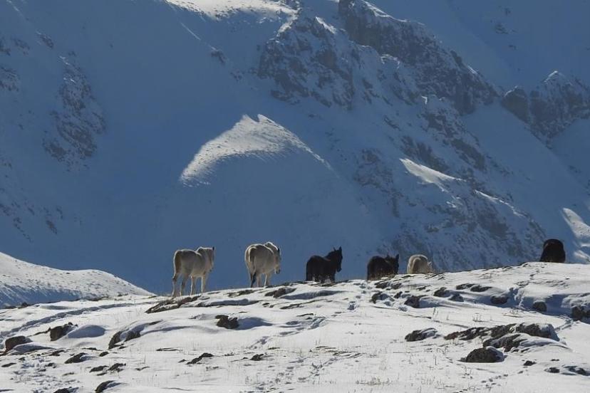 Yaylada karla kaplanan arazide otlayan yılkı atları, bölgeye gelen gezgin fotoğrafçılar tarafından görüntülendi. Ürkek yapılarıyla bilinen ve Munzur Dağları’nda sürü halinde dolaşan yılkı atlarının oluşturduğu görüntüler görenleri adeta mest ediyor.