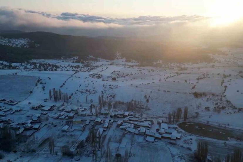 Eskişehir’in yüksek rakımlı ilçesi Mihalıççık’ın bazı mahallelerine Nisan ayının ortasında yağan kar şaşırttı.