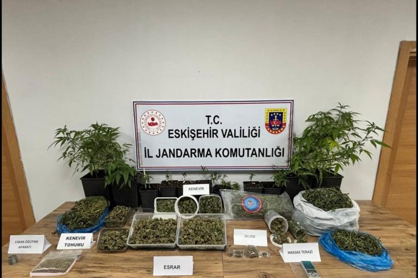 Edinilen bilgilere göre; İl Jandarma Komutanlığı ekiplerinin uyuşturucu suçları ile mücadeleye yönelik çalışmaları neticesinde, Odunpazarı İlçesi’nde bulunan Kent Ormanı’na satmak için uyuşturucu madde getirileceği öğrenildi. Jandarma ekiplerince konuyla ilgili çalışma başlatıldı. Kent Ormanı girişinde yakalanan 2 şüpheli şahsın üstünde ve ikametlerinde aramada yapıldı. Aramalarda; 3 bin 743 gram esrar, 18,5 gram skunk, 15 kök kenevir bitkisi, 1 adet hassas terazi, 1 adet öğütme aparatı, 157 gram kenevir tohumu ve iklimlendirme malzemeleri ele geçirildi. Şüpheliler hakkında ’Uyuşturucu veya Uyarıcı Madde İmal ve Ticareti’, ’Kullanmak İçin Uyuşturucu veya Uyarıcı Madde Satın Almak Kabul Etmek veya Bulundurmak’ ve ’Uyuşturucu Maddelerin Murakabesi Hakkında Kanuna Muhalefet’ suçlarından soruşturma başlatıldı.