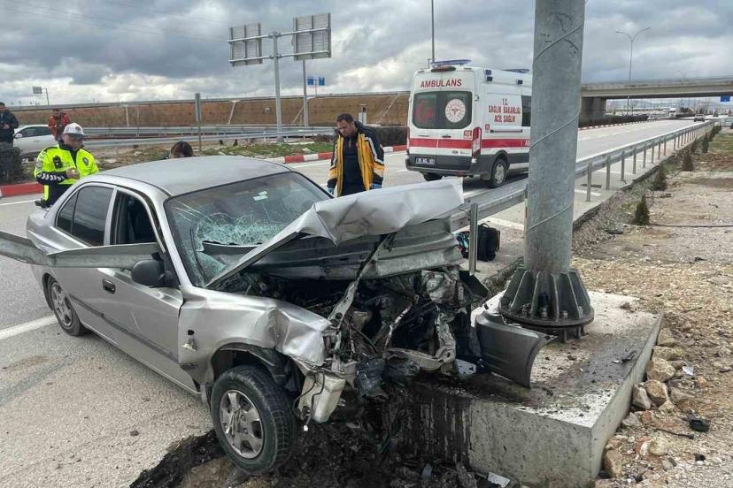 Karaman’da sürücüsünün direksiyon hakimiyetini kaybettiği otomobil demir bariyere ok gibi saplandı.
