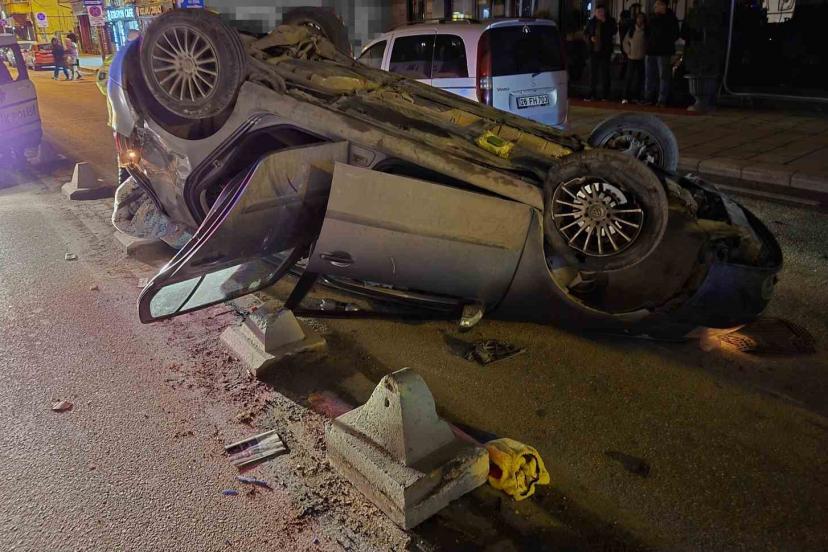 Olay, dün akşam saat 23.00 sıralarında Hoşnudiye Mahallesi İstasyon Caddesi’nde meydana geldi. Edinilen bilgilere göre; Ö.A. (39) isimli kadının idaresindeki 26 E 0210 plakalı otomobil, sürücünün direksiyon hakimiyetini kaybetmesi sonucu orta refüjdeki taş bariyerlere çarparak takla attı. Savrulan otomobil park halindeki 26 AEF 540 plakalı otomobile de çarparken, yolun ortasında ters döndü.