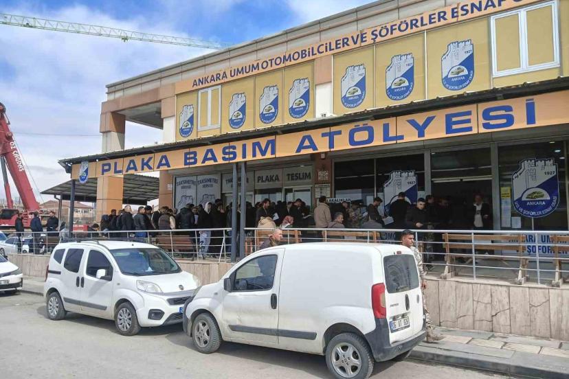 Plakasının yazı sitili standartlara aykırı olan sürücüler ceza yememek için plaka basım atölyesinde uzun kuyruklar oluşturdu